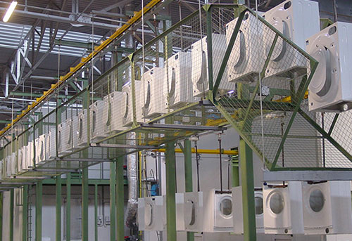 The hook-type shot blasting machine is suitable for surface cleaning or strengthening of castings, forgings, welded parts and heat-treated parts of various varieties, large, medium and small batches. It is divided into two main forms: single hook type shot blasting machine and double hook type shot blasting machine. The chamber adopts a fully enclosed structure, special wear-resistant alloy cast iron guard plate, and no projectile splashing. The electric hoist is used to realize the loading, unloading, lifting and walking of the workpiece; the self-rotation device is used to realize the forward and reverse rotation of the workpiece in the shot blasting chamber, and automatic or manual control can be selected. It has the characteristics of no pit, compact structure and high productivity.